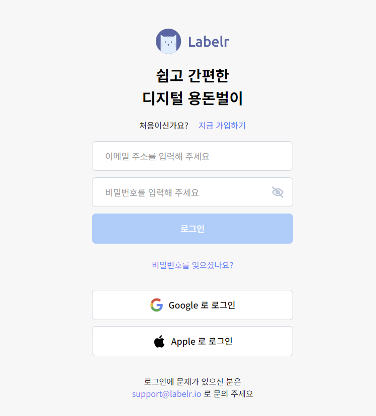 레이블러 홈페이지 들어가면 오른쪽 위쪽에 작업자로 일하기 버튼을 누르면 가입하라고 나옵니다. 간단하게 구글 메일로 가입합니다.