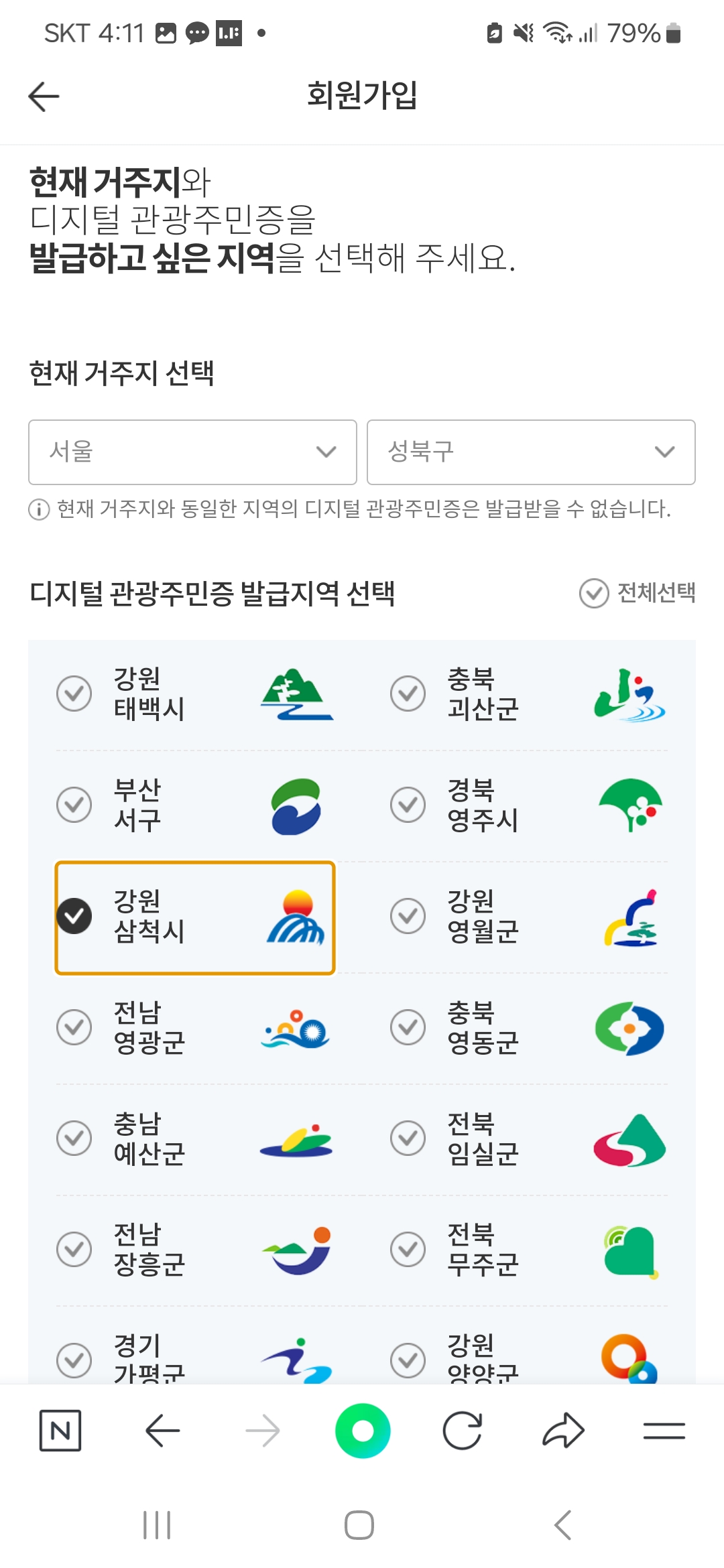 (※ 내가 거주하는 곳은 디지털 관광주민증이 발급되지 않으니, 이 점 참고하시기 바랍니다.)
