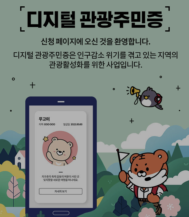 디지털 관광주민증은 인구 감소 위기를 겪고 있는 지역의 관광 활성화를 위해 발급되는 명예 주민증입니다. 이 주민증은 인구 소멸 위기에 처한 지역에서 발급되며, 해당 지역에서 관광 시 숙박, 체험 등 다양한 할인 혜택을 받을 수 있습니다.