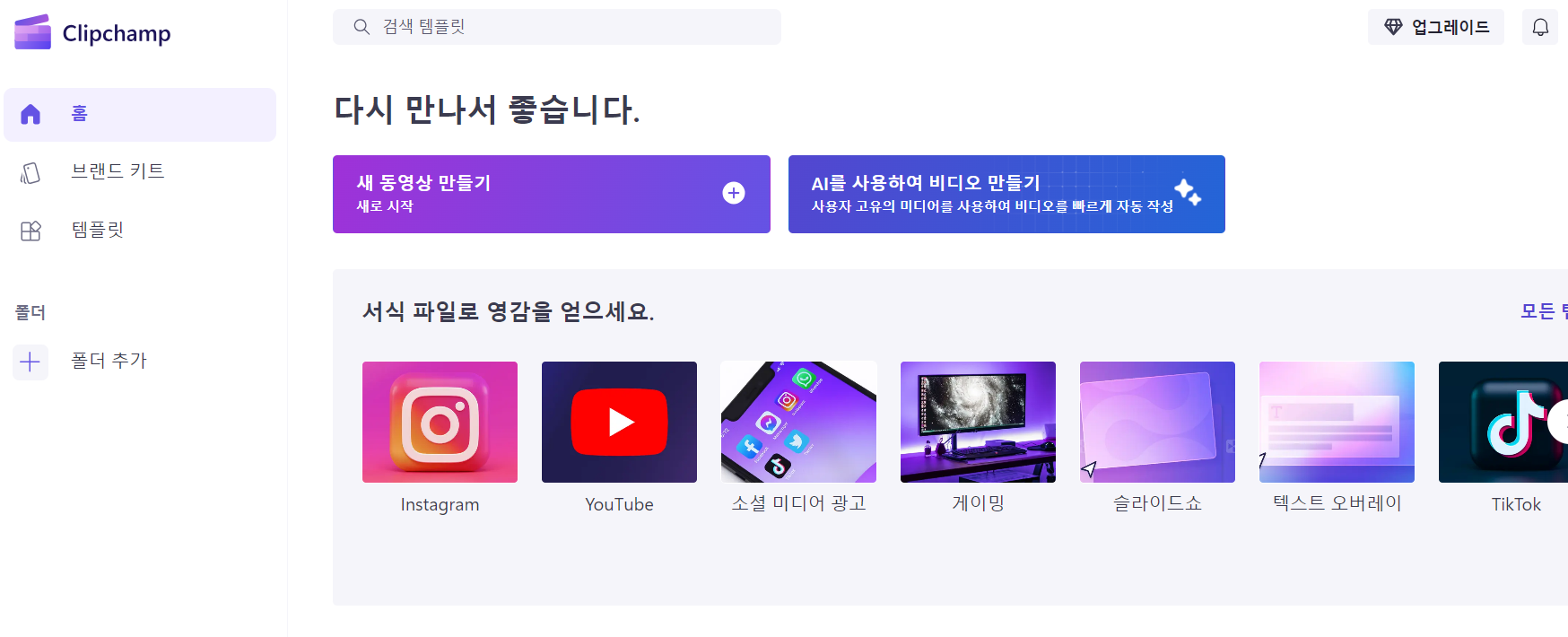 동영상 편집은 클립챔프을 이용합니다. 클립챔프 사이트에 접속해 로그인해줍니다. 새 동영상 만들기를 클릭합니다.