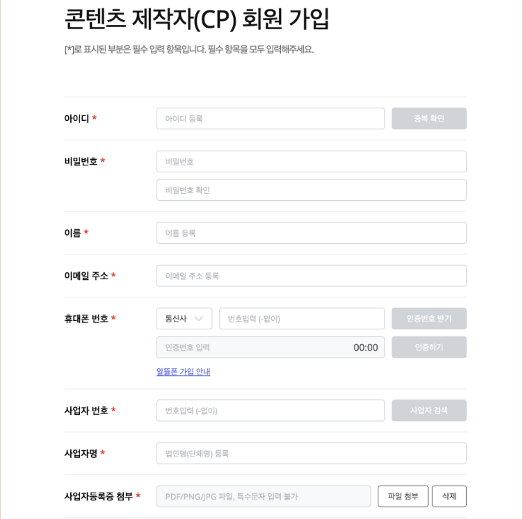 먼저 V컬러링 마켓 플레이스에 가입을 합니다. 중요한 점은 회원가입할 때 사업자등록증이 있어야 합니다. 사업자 번호와 사업자 등록증을 사진찍어 첨부파일로 올립니다. 회원가입을 하면 핸드폰으로 찍은 동영상을 준비합니다.